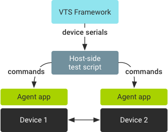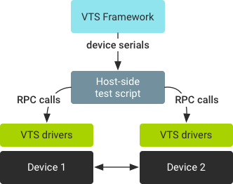 El VTS admite pruebas que requieren interacción entre varios dispositivos Android.